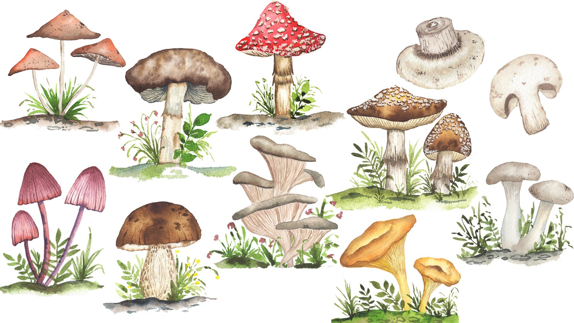 Seared mushrooms with garlic and thyme. Personal and commercial use (up to 500 end products) included. Join me in painting this mushroom trio! Watercolor helps you to build the expression of personality through your artworks. On a palette, drop a bit of water and concentrated paint right next to it.